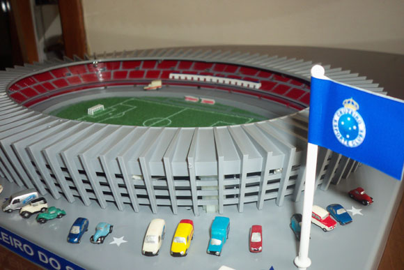 Detalhe dos Fords (resina em 1,5cm) no estacionamento: Transits, Rurais, Mavericks, Coupes 1937; o Cruzeiro Esporte Clube, atual tricampeão brasileiro (1966, 2003 e 2013) e meu clube de coração, é o maior campeão da Era Mineirão, com 23 títulos após 1965, tendo, também, o recorde de público do estádio - 132.834, no Campeonato Mineiro de 1997, no qual sagrou-se campeão contra o Villa Nova, de Nova Lima
