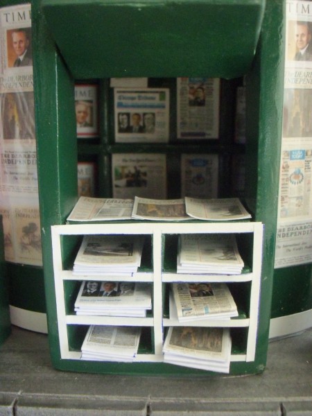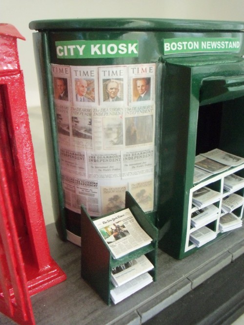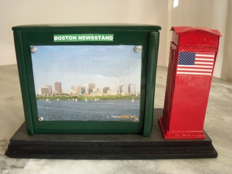 Réplica de banca de revistas (resina) no centro de Boston, Estado de Massachusets
